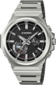 G-SHOCKのタフネス構造と機能美を受け継ぎつつ研ぎ澄まされたミニマルな表現で再構築したSLEEK STYLEです。 ロゴを排したベゼルは光の角度で表情を変え豊かな質感を演出。ステンレススチール製のバンドにはヘアライン仕上げとミラー仕上げを施し、三つ折れ式中留は端正なデザインとホールドが魅力です。 G-SHOCK初号機“DW-5000C”から継承したベゼルデザインやレンガパターンが、スポーティさも加えています。 メタルベゼルが衝撃をガードし、カーボンファイバー強化樹脂製のケースがモジュールを保護。さらに、ガラス接着方式や小型モジュールにより耐衝撃構造を実現しつつ厚みや重量を削減。快適な着け心地と実用性を両立しています。 ビジネスからカジュアル、アウトドアまで多くの瞬間に対応できる「オールラウンド・タイムピース」です。